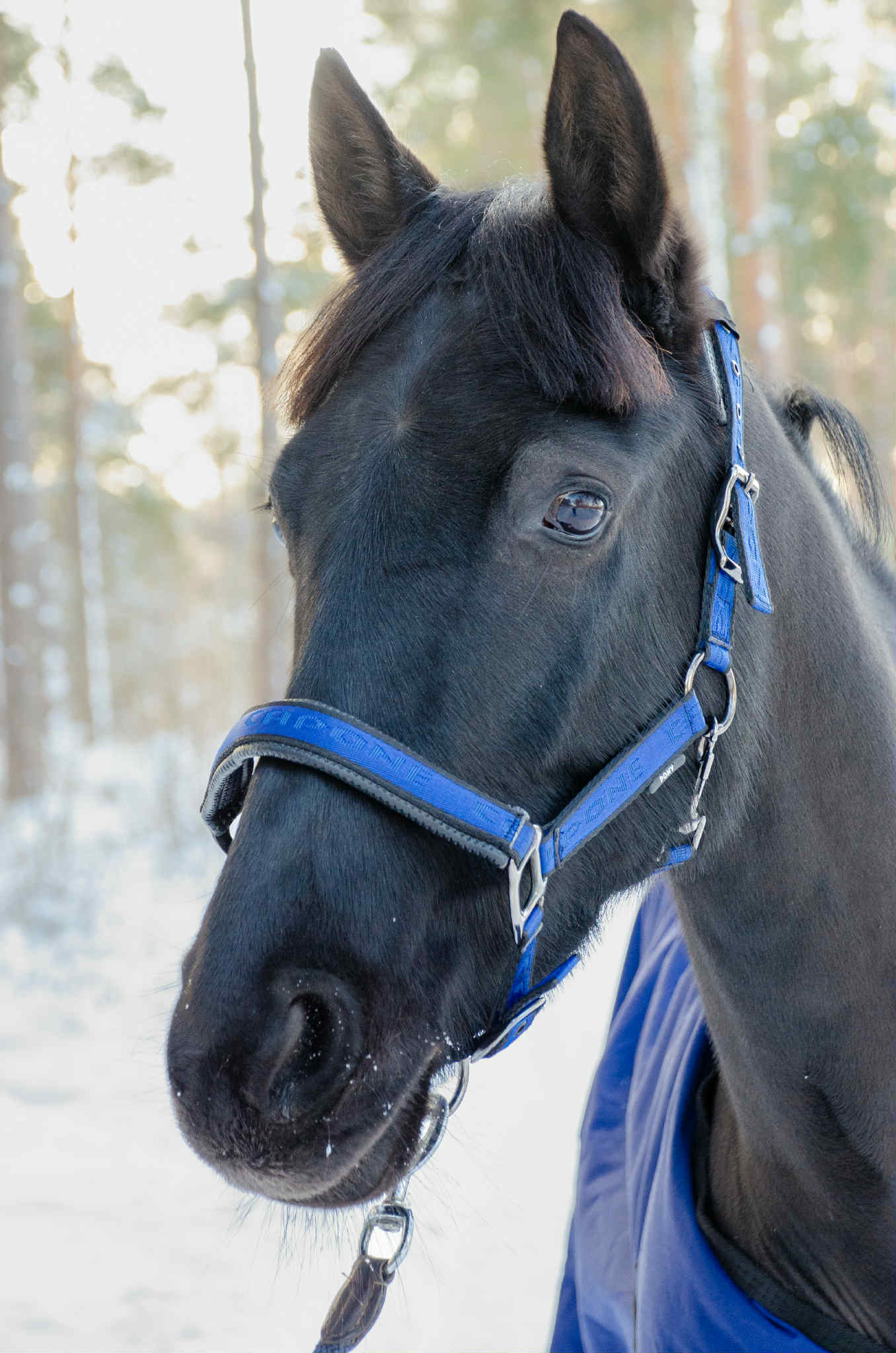 Equiline E-logga schabrak svart med blå och svart passpoal