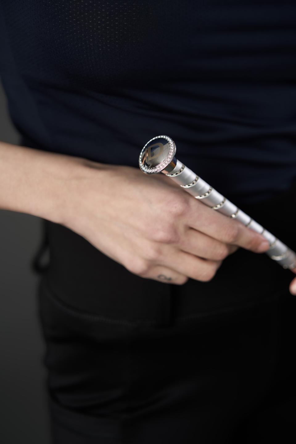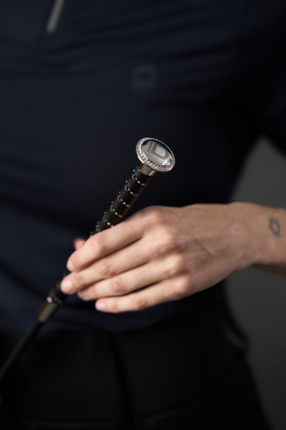 Elegant dressyrpisk med strassdetaljer på handtaget.