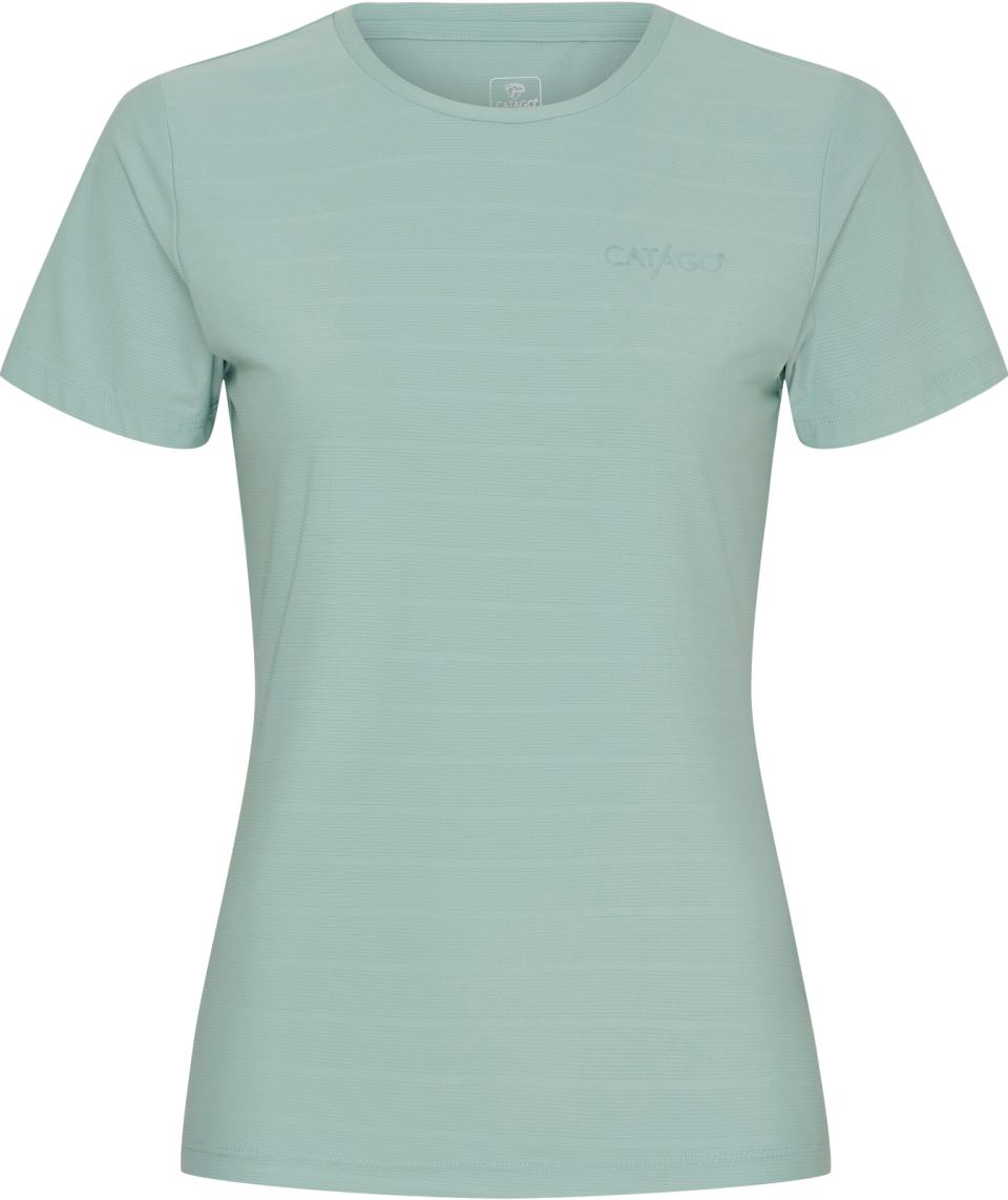 Sportig kortärmad T-shirt med rund halsringning. Tillverkad i ett stretchigt material som gör den perfekt för vardagens alla aktiviteter. De lodräta ränderna med nåleffekt ger tyget ett snyggt uttryck och bidrar till naturlig ventilation under varma dagar. Avslutas med ett stilrent CATAGO-logotryck på bröstet.
